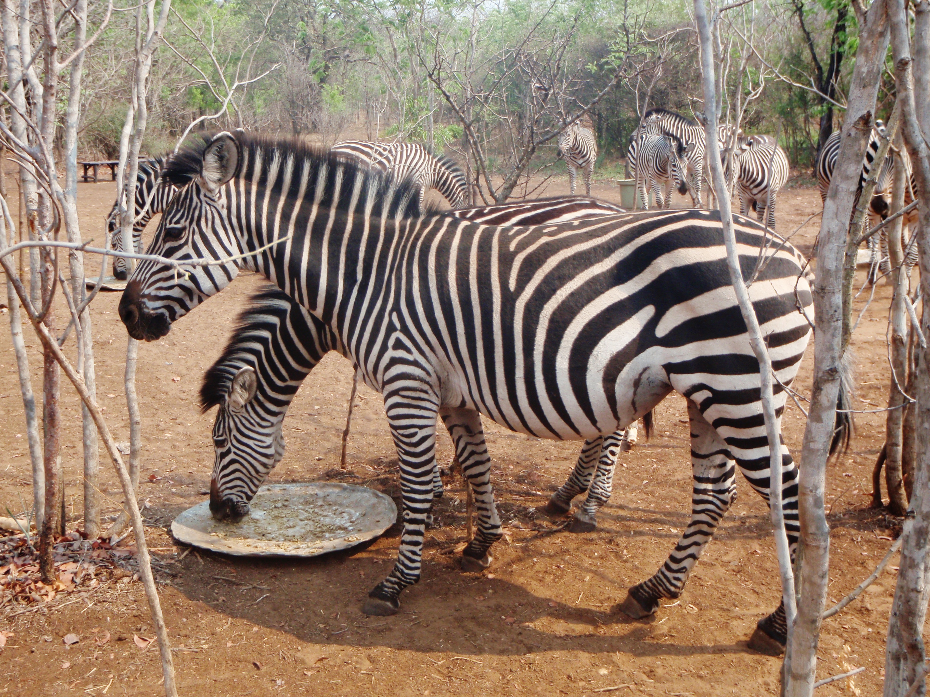 This morning we got up and went to a buffet breakfast at a fancy resort in Livingstone. The hotel was beautiful, the food was good, and they have zebras and giraffes that roam the property. The giraffes were shy and walked away, but we got up close and personal with the zebras, which was awesome, especially since we didn’t see any on our safari. There was a little baby zebra, and a few of the adults were pregnant.